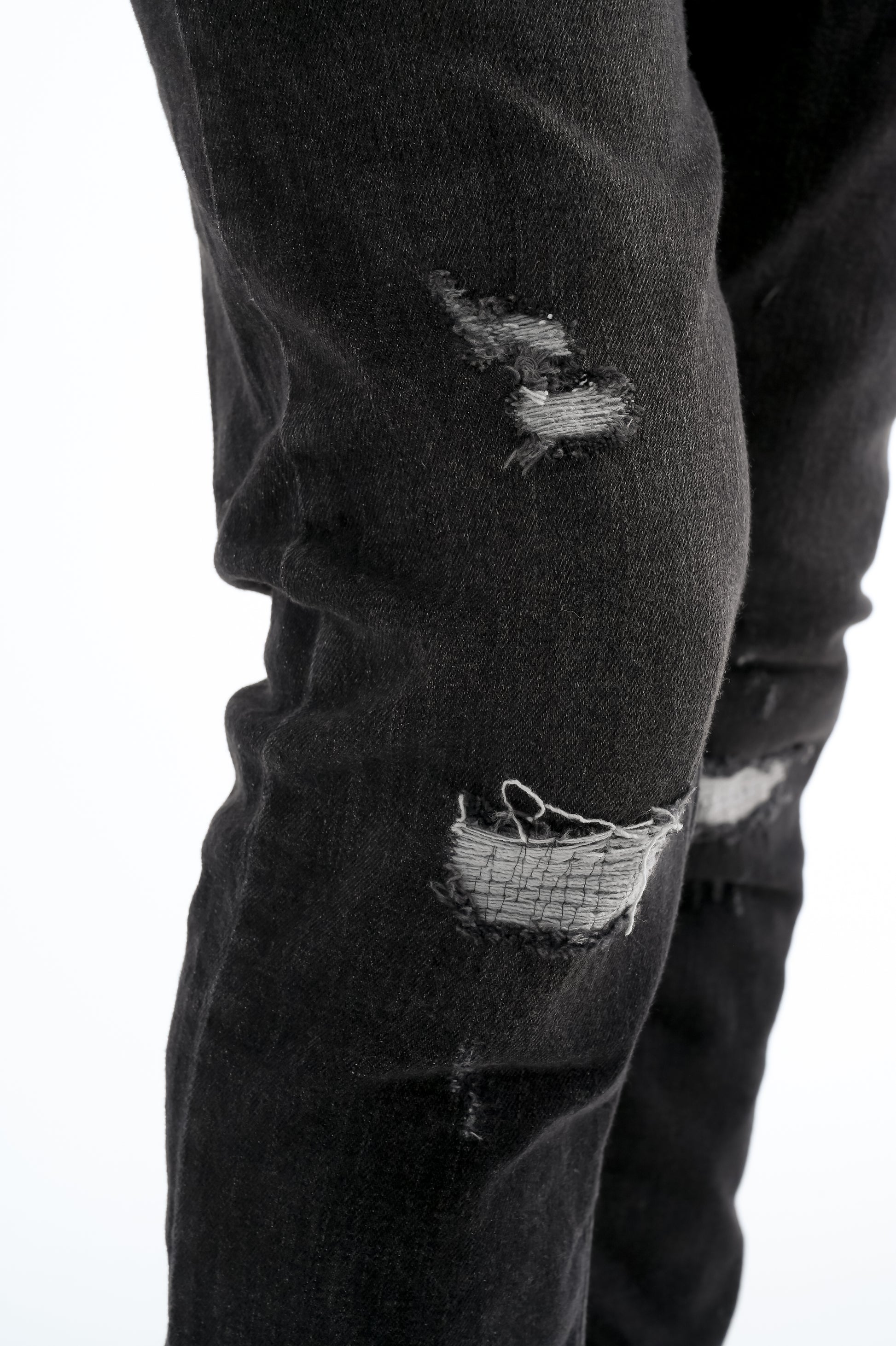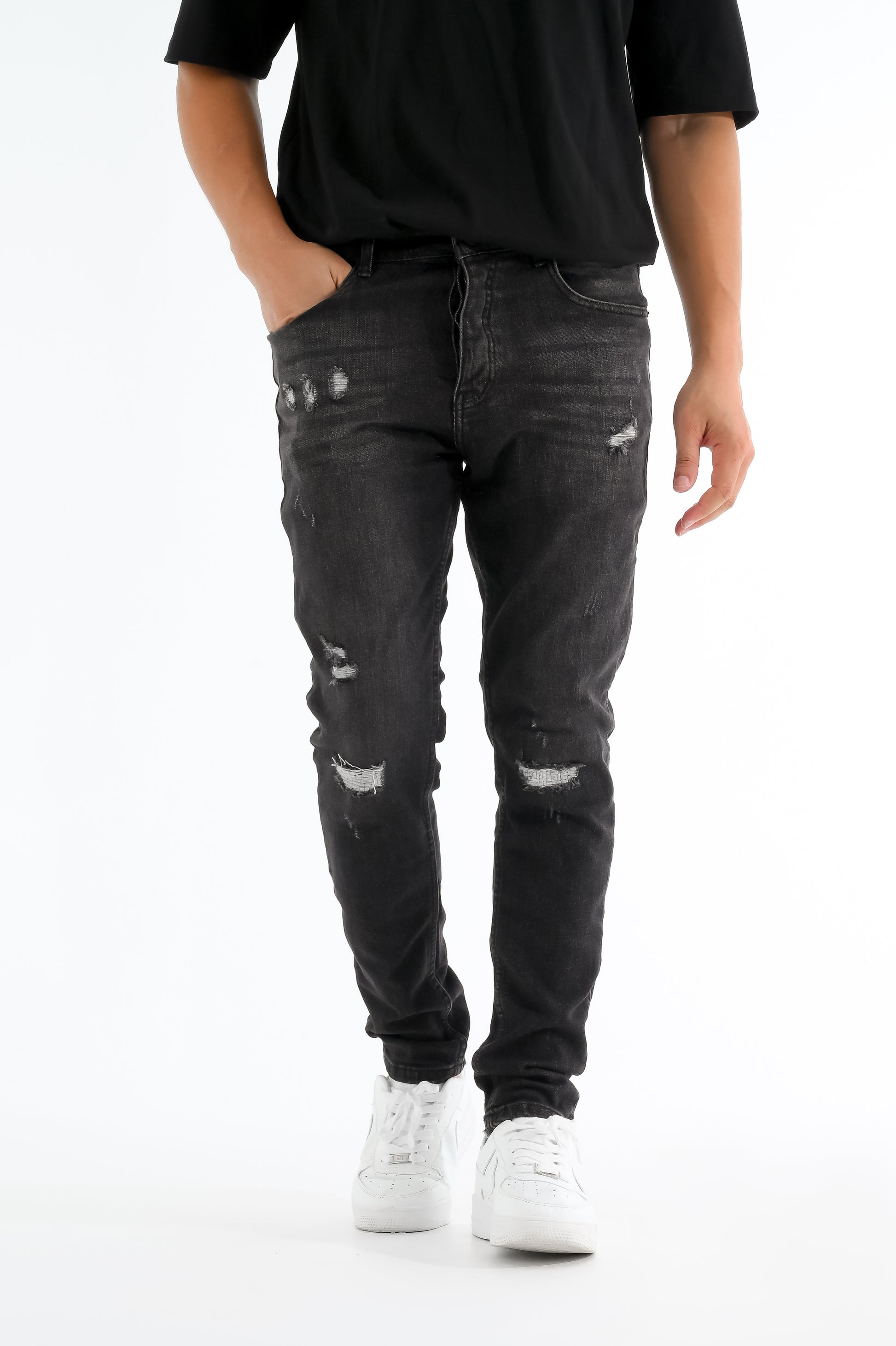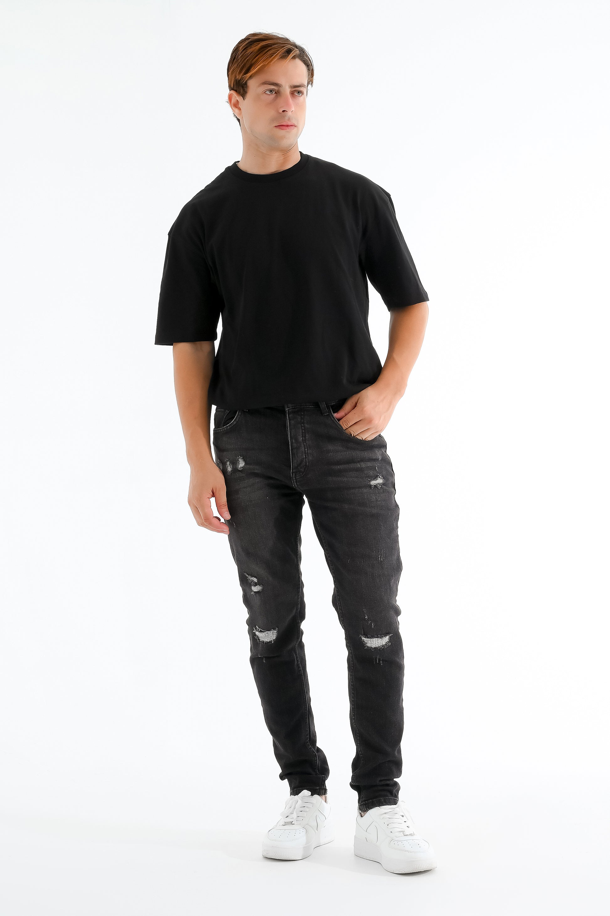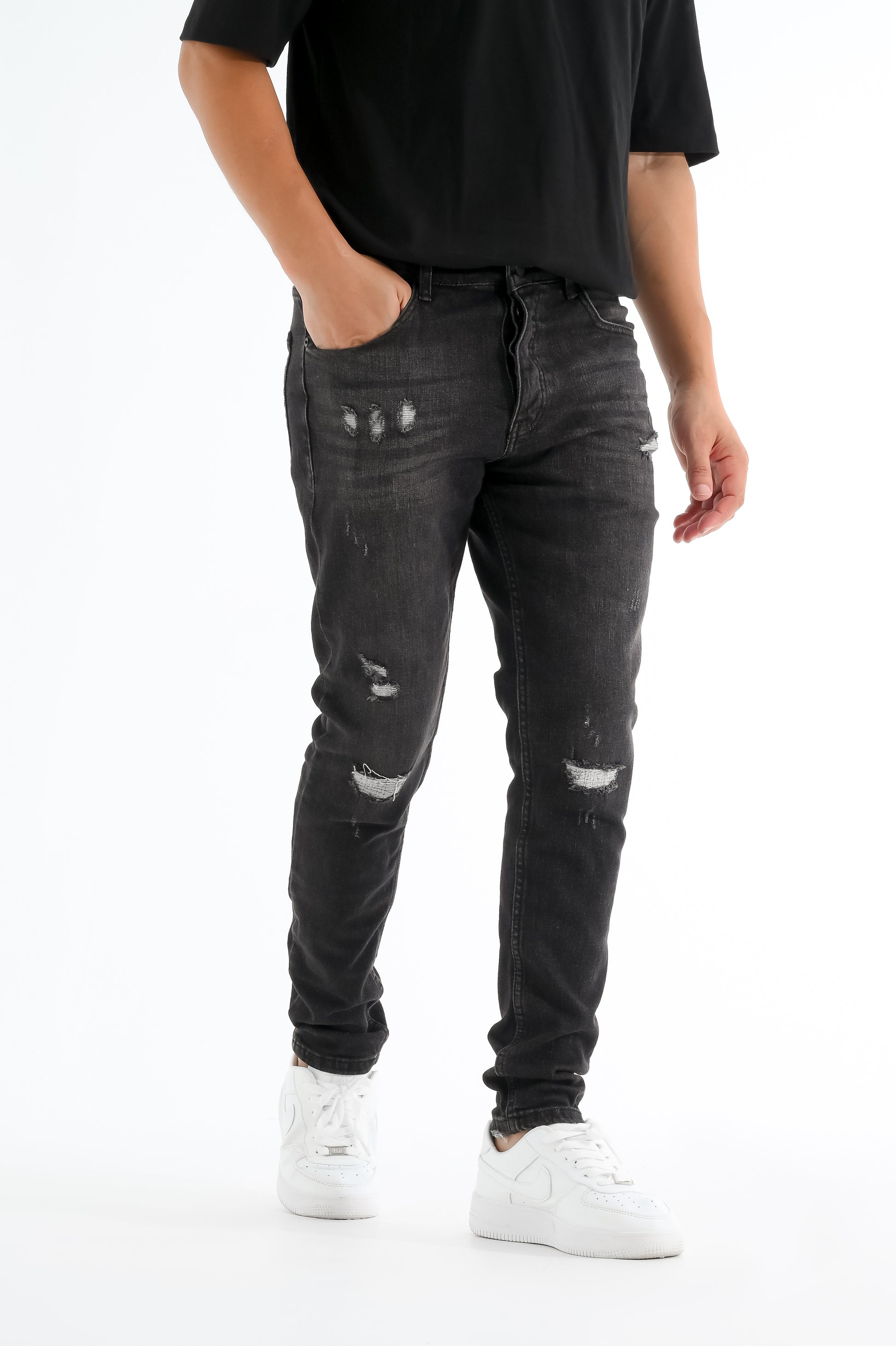 بنطلون جينز اسود سليم فيت ممزق غير كاشف